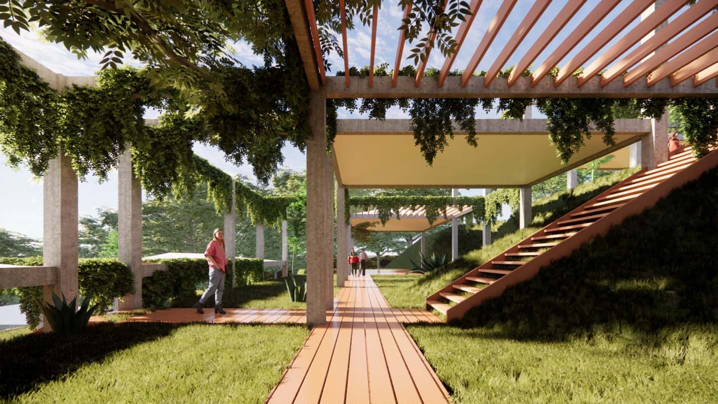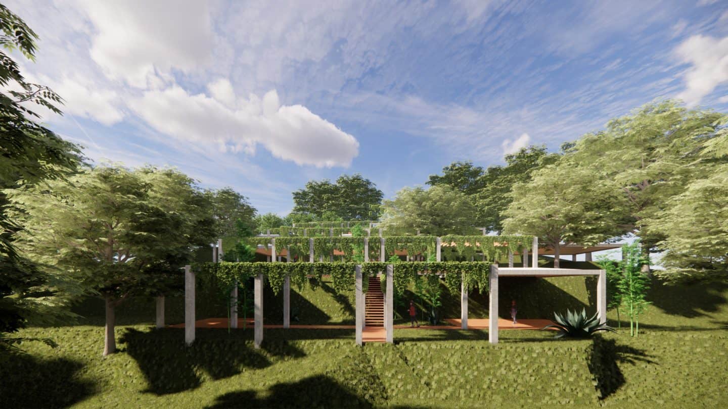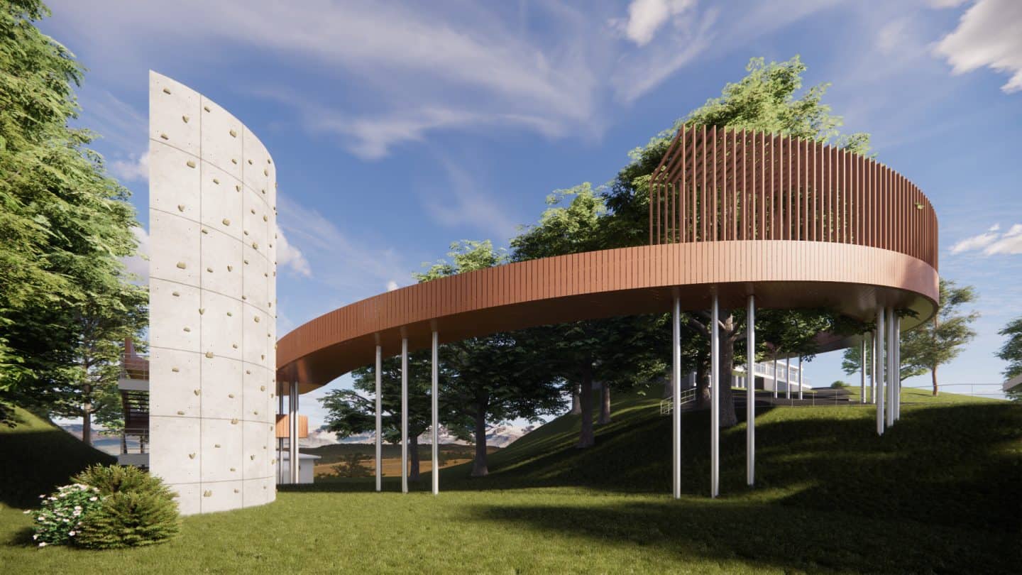 Los proyectos periféricos completan el conjunto: un campamento en terrazas naturales con cabañas en madera y pasarelas que respetan la topografía, canchas con gradería integrada a la pendiente y un espacio de fogata circular en el bosque. Un proyecto que fomenta la formación, la actividad al aire libre y la conexión con la naturaleza para la comunidad local y visitantes de todo el país.